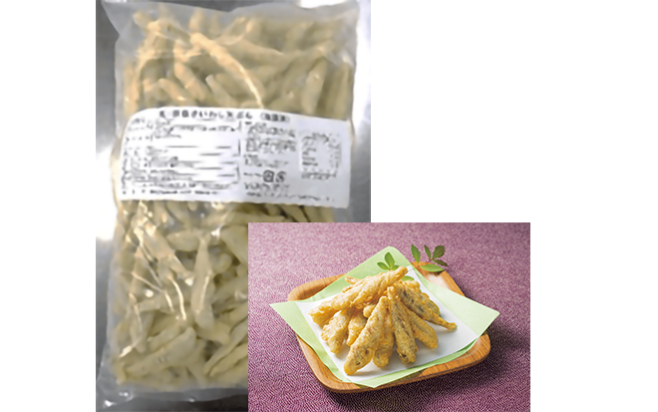 頭が無く、苦み・臭みが少なく食べ易く仕上げています。衣付のIQFで500gの使い易さ。凍ったまま170℃~180℃の油で約2分30秒揚げてご利用下さい。※数量に限りがございます。