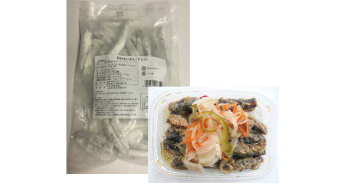 いわしのすり身を使い、容易にかめるやわらかさに仕上げています。形は魚の切り身をイメージしています。いわしの風味を活かした味わいで、和食メニューにぴったりです。