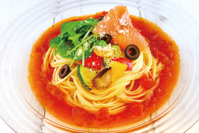 夏野菜と魚介の冷製パスタ