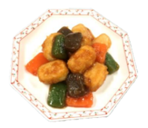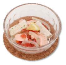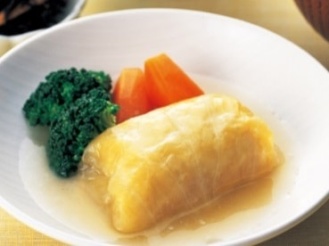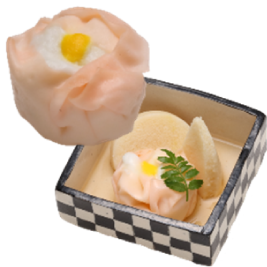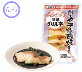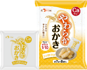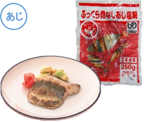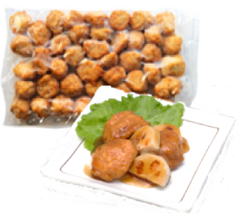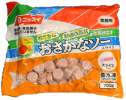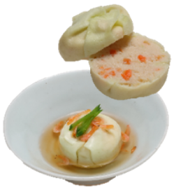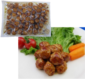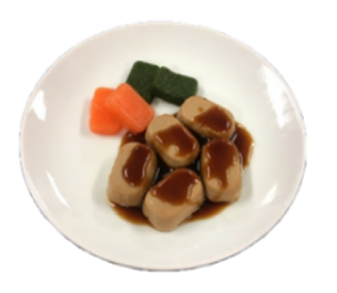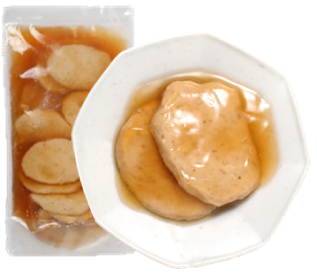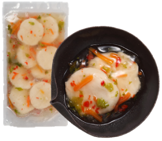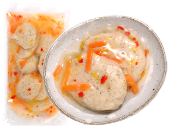 いわしのすり身を使い、容易にかめるやわらかさに仕上げています。形は魚の切り身をイメージしています。いわしの風味を活かした味わいで、和食メニューにぴったりです。