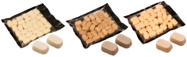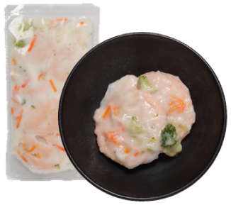 素材は細かく豆腐を配合することで、ふわふわの食感に仕上げました。1個(約10g)にカルシウム50㎎、マグネシウム25㎎を配合。沸騰したお湯で温めるだけの、便利なボイルパックです。