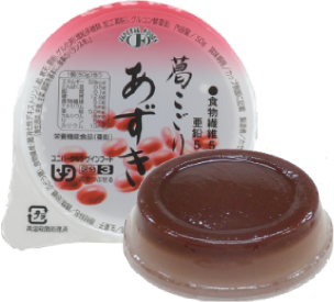 お餅風味のゼリーと、こしあんのソースを合わせた和風デザートです。容器のまま蒸して温かく、または自然解凍で冷たいおやつとしてお使いいただけます。舌でつぶせるやわらかさ。