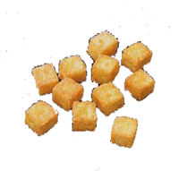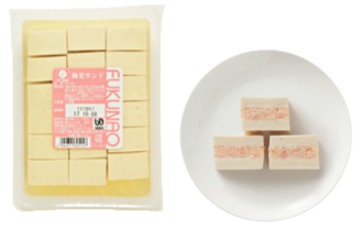 味のある生エビを荒くつぶしてから、豆腐生地でサンドしています。調理済なので開封するだけでご使用いただけます。やさしい色合いが色んなメニューにあう、人気の一品です。