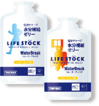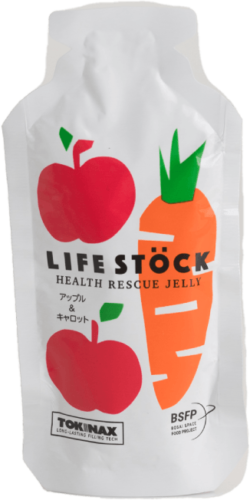 被災地から生まれた本当に欲しかった備蓄食 LIFE STOCK 被災直後は、まず水が不足します。水がなくても誰でもすぐに食べられる非常食の必要性を痛感しました。震災の経験から生まれたのが、賞味期限(製造日より)5年6ヵ月のゼリータイプの非常食です。