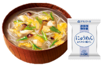 保存食でも美味しいものを!容器付き非常用保存食 賞味期限は製造より5年。 主食のかわりとなるにゅうめん(まろやか鶏だし)は幅広い年齢層の方に美味しいとご支持を頂いている商品です。便利な商品形態。軽く、小さいのでコンパクトなスペースで備蓄可能です。