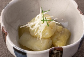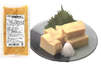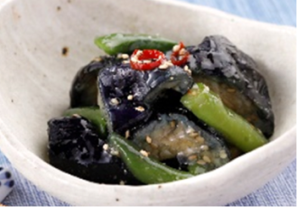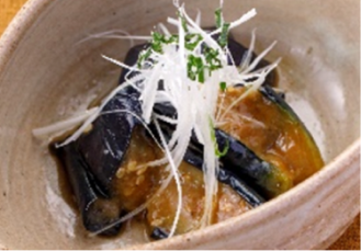 一口サイズにカットした揚げ茄子を甘口の特製味噌ダレと和えました。少し濃いめで、後を引く味わいが特徴です。