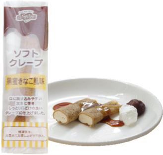 *黒蜜風味のしっとり生地と、きなこを使った香ばしいなめらかなクリームのソフトクレープです。(個包装)