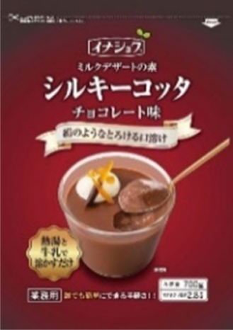 *熱湯と牛乳で簡単にできるミルクデザートの素“シルキーコッタ”のチョコレート味で、絹のようななめらか食感です♪