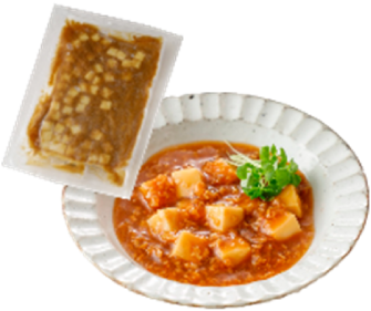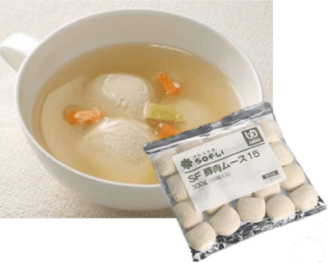 *鶏肉・にんじん・厚揚げ豆腐を独自の方法で軟らかく仕上げました。