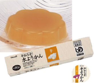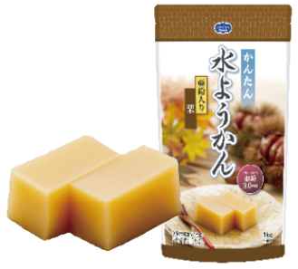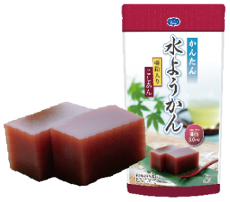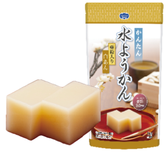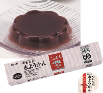 あんこの風味を活かし、コクのある甘みに仕上げた水ようかんです。ユニバーサルデザインフードの区分「舌でつぶせる」です。