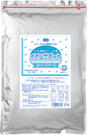 クラッシュしても離水しにくく、再結着性がありよくかきまぜるととろみ状になる特性の水分補給ゼリーの素。2Kg(40ℓ用)