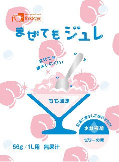 クラッシュしても離水しにくく、再結着性がありよくかきまぜるととろみ状になる特性の水分補給ゼリーの素。56g(1ℓ用)