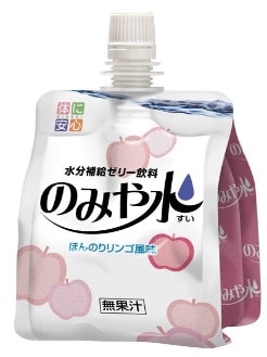 まとまりがよく離水が少ない、均質な新食感水分補給ゼリー飲料です。味はりんご風味でさっぱりとして美味しく、食事中の水分補給にもおすすめです。