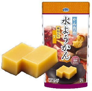 お湯で溶かして冷やすだけ。ほどよい甘みでさっぱりとした味で、毎日食べても飽きません。なめらかで飲み込みやすく優れた物性です。粉末タイプです。