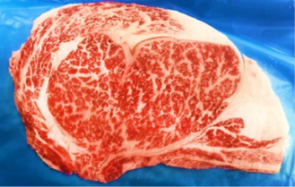 和牛リブロース(肩から背中につながる部位)をスライスしました。色沢(しきたく)が美しく、霜降りになりやすい部位です。肉の旨味と脂肪の甘味をバランス良く味わえます。