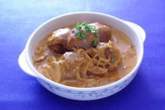 気仙沼産のカツオに丸大豆醤油・砂糖で下味を付け、細かく刻んだ玉ねぎをバランス良く配合しました。