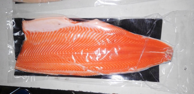フレッシュ トラウト トリムB (真空) <約1.2kg~1.4kg/枚>[冷蔵] ノルウェー産のサーモントラウトは鮮やかな赤色、すっきりとした脂ののりと濃い味わいが特徴です。稚魚は、氷河の雪解け水で一年間淡水で育てられた後、水深400m以上もあるフィヨルドに移され、大きくなります。 【加工度合】 皮付き・腹骨なし・カマ取り・腹ヒレなし・ピンボーンあり