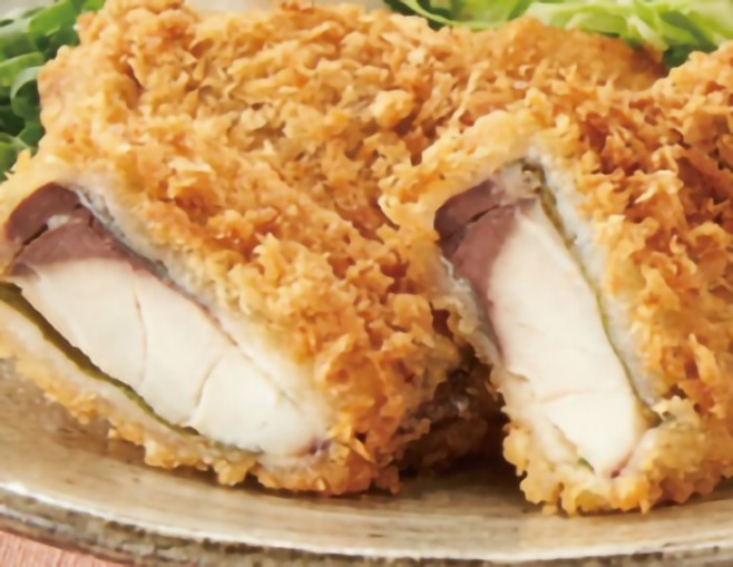 ごちそうタラカツ<50g-50個×4>[冷凍] 新鮮な助宗たらを使用したカツです。衣の剣立ちも良く、2枚重ねにした身の食感はフンワリとしています。