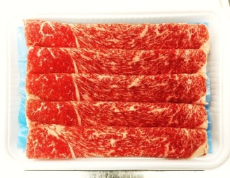 最上級と言われるリブロース(背ロースのかた寄り前半分の部位)を鍋用にスライスしました。