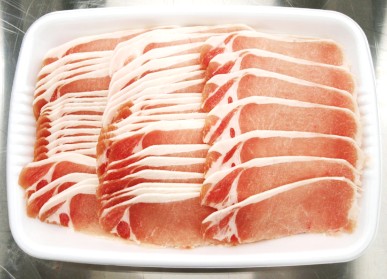 豚バラスライス 1.5mm 飯南 島根県飯南町産の銘柄豚!管理が行き届いた養豚場で飼育され、余計な薬剤投与を行わず、こだわりの飼育方法により大切に育てられた豚です。脂身まで美味しく、臭みもなく冷めても硬くならないのが特徴です。しゃぶしゃぶやセイロ蒸しなどにお使いください。掲載商品については各営業担当までお問い合わせください