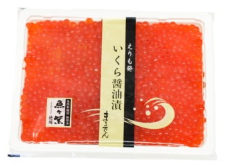 空飛ぶいくら(いくら醤油漬け) 空飛ぶいくら 500G 銀聖の卵を秘伝の鮭醤油を加えたタレに漬け込みました。漁獲されたその日に腹だし→次の日に生で出荷。限られた時期しか味わうことのできない貴重な逸品です。