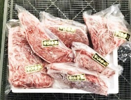 黒毛和牛 モモ肉ブロック真空 約1kg 黒毛和牛のモモ肉をグリムキにし、ブロック状にして真空包装してあります。1ブロックあたり、約600g~1kg前後の使いやすいサイズにカットしてあります。ミニステーキや陶板焼き、ローストビーフなどにお使いください。