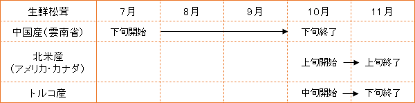 新鮮生松茸 中国産、北米産(アメリカ・カナダ) 産地別出荷時期