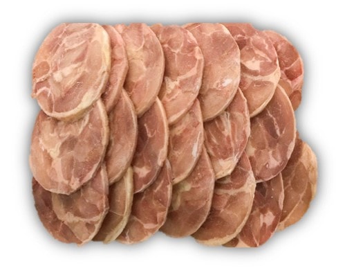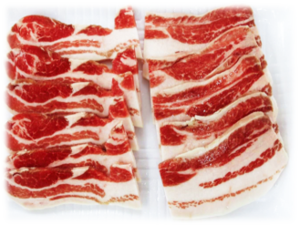 赤身と脂身が交互に3層に重なり、濃厚でジューシーな味わいです。焼肉・炒めもの・煮物などにお使いいただけます。