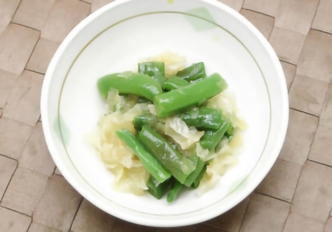 いんげんと食感の良い白きくらげにごま油をきかせ、鶏がらスープの旨みを加えたナムルです。