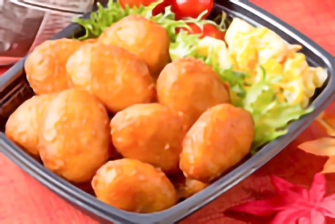 新鮮な若鶏のモモ肉をジューシーな唐揚げにしました。冷めても柔らかく、ご飯にもおつまみにも合います。